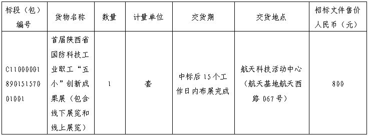 首届陕西省国防科技工业职工“五小”创新成果展(包含线下展览和线上展览)招标公告