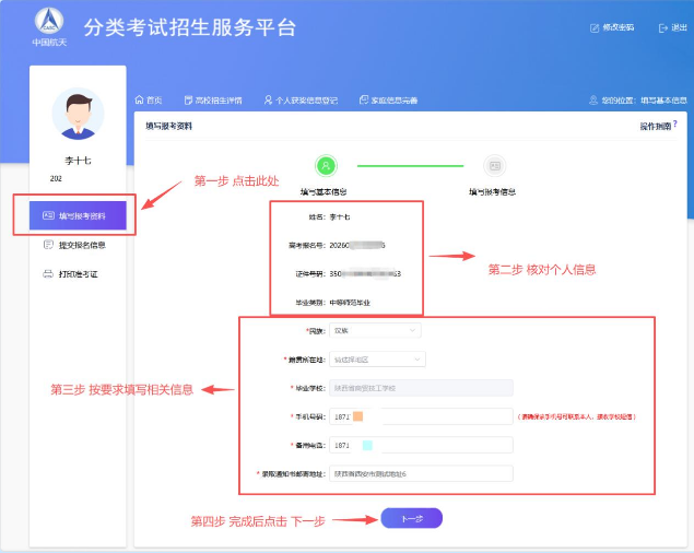 四、填写报考资料