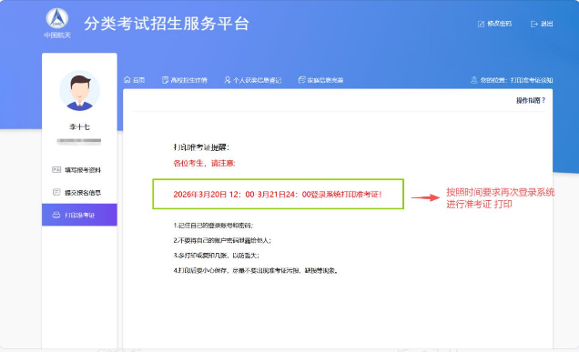 2026年3月20日12:00——3月21日24:00,考生再次登录系统自行下载打印准考证。具体考试地点以准考证为准。